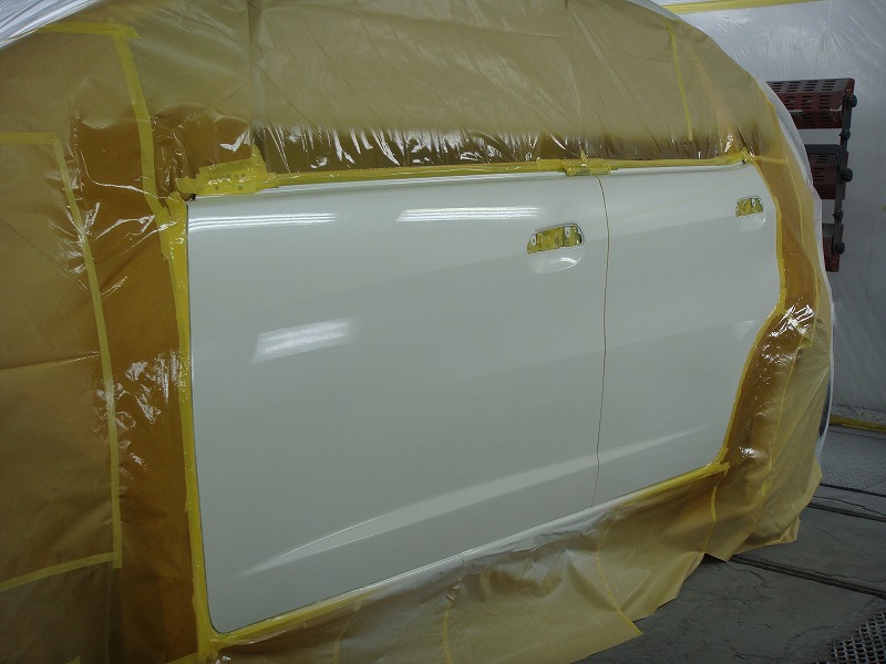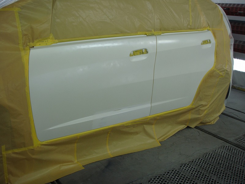 当店では、車両塗装時に付属品、例えばドアを塗装するのであれば、ドアミラー、水切りモール、ドアハンドル、ウィンカー等の部品は全て取り外しての作業を基本としております。これらの部品をマスキングで覆って塗装することも不可能ではありませんが数ヶ月〜数年経った時にモール等の際から塗装が剥がれたりする可能性を考えると、マスキングでの作業はお勧めできることではありません。新車ラインの車両は何の部品も付いてない状態で塗装されてますよね?この鈑金塗装という仕事が、事故車両を限りなく修理において新車に近い状態に復元する事を目的とするのであれば当然の作業だと考えております。